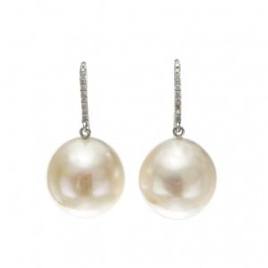 3144. Boucles d'oreilles retenant deux perles surmontées d'une ligne d...