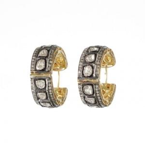 Travail indien, or 585, argent et argent noirci, D 2 cm, poids b...