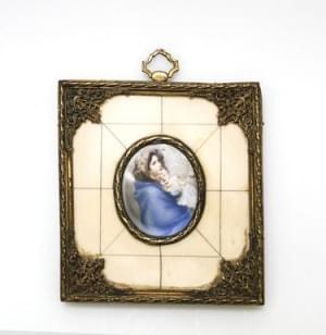 Jeune femme et nourrisson, miniature sur ivoire,