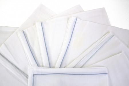 3190. Nappe et 12 serviettes blanches brodées de palmes dorées