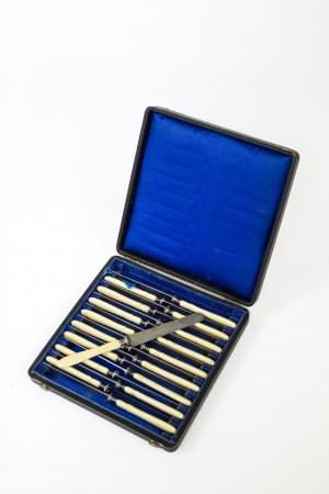 Métal argenté, H 4.5 cm. On joint un étui à feuilles en métal ar...