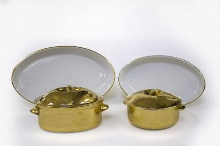 Porcelaine émaillée or, H 10 et 12 cm, L 30 et 35 cm