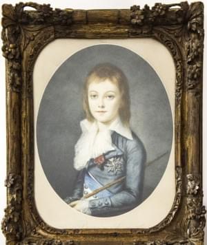 Portait de jeune garçon, fusain et craie blanche sur papier, 60x...