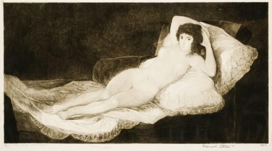 La Maja Desnuda , eau forte, signée et datée 1933, 49x88 cm