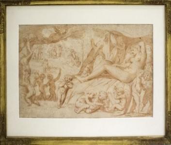 Vénus et les putti, gravure à la manière de la sanguine, 26x40 c...