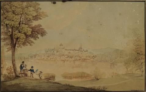 Vue de Neuchâtel, aquarelle sur papier, 16x27 cm. Provenance : C...