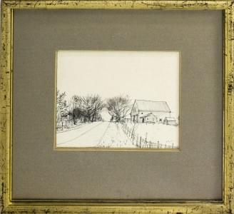 Grands chênes près de la ferme, mine de plomb sur papier, signée...