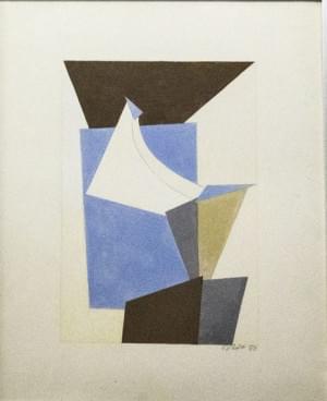 Composition polyédrique, aquarelle et gouache sur papier, 21x14...