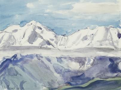 Montagnes enneigées, aquarelle sur papier, signée et datée 1937,...