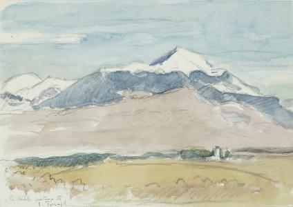 Montagne derrière les nuages, aquarelle sur papier, signée, 24x3...