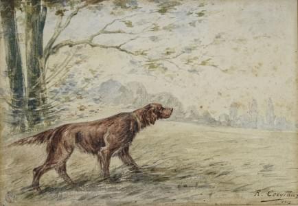 Chien de chasse, aquarelle sur papier, signée et datée 1917, 18,...