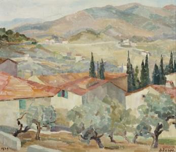 Maisons en Provence, huile sur toile, signée et datée 1929, 40x4...