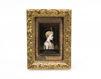 Saint Jean-Baptiste enfant, plaque en cuivre émaillée, 7x4.5 cm