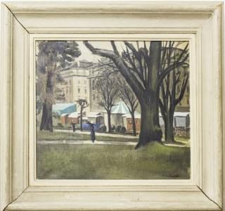 Les forains au jardin anglais, huile sur toile, signée, 38x46 cm