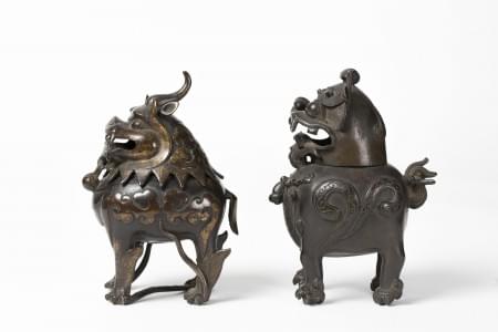 1050. Deux brûle-parfums en forme de luduan, Chine, dynastie Ming (136...