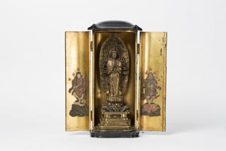 1053. Autel portatif (Butsudan) abritant un Bouddha debout devant une...