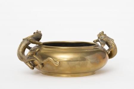 Bronze, anses en dragon, marque Xuande apocryphe, D 21 cm