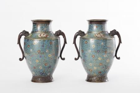 1074. Paire de vases en cloisonné, Japon, époque Meiji (1868-1912)