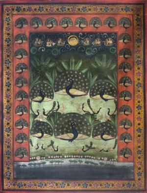 1090. Grande miniature à décor de paons, Nadthwara, XXe s