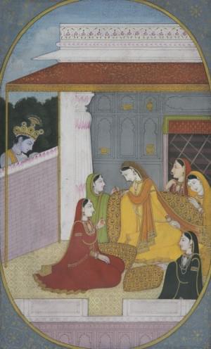 1094. Krishna qui regarde Radha et ses servantes, Inde