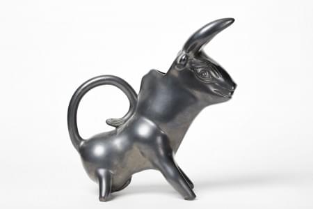 Taureau aquamanile, céramique lustrée noire, H 40 cm