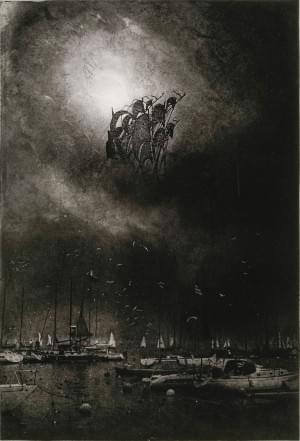 La chute de Sodome et Gomore, 1980-1982, gravure en noir, signée...
