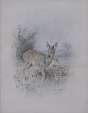 Faon, craie et mine de plomb sur papier, signé, 31x24 cm