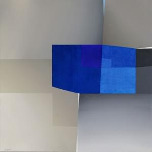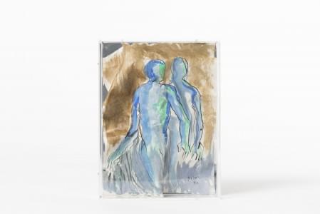 Deux silhouettes bleues, papier froissé sous plexiglas, 5x23x17...