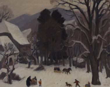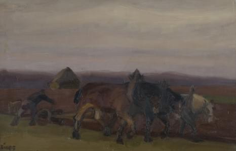 Chevaux de labour, huile sur toile, 38x55 cm