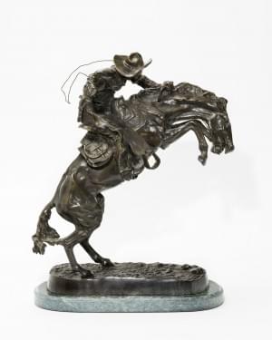 Bronco buster, bronze à patine brune, signé, socle en marbre ver...
