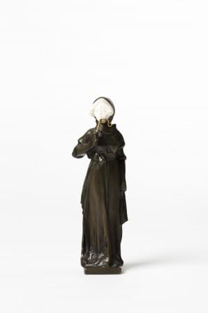 Femme au lorgnon, bronze et ivoire, signé, H 12 cm