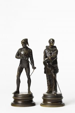 Pierrot, métal à patine verte, H 17,5 cm