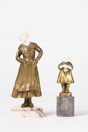 Bronze et ivoire, H 8 et 15 cm