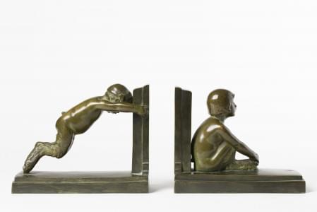 Paire de serre-livres faunes signés Silvestre, fonte Susse Paris...