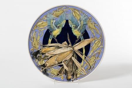 Céramique à décor d'épis de maïs, datée 1900-1902, D 40 cm