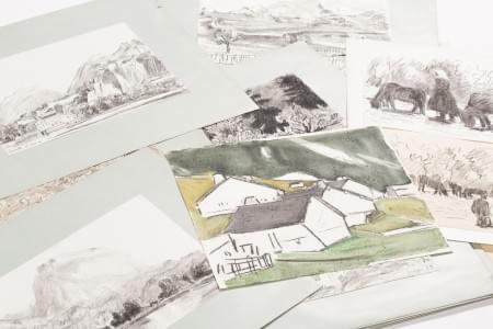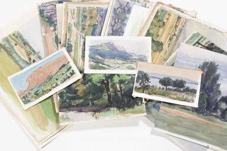 Ensemble de croquis, études et dessins, divers paysages et étude...