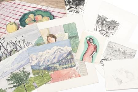 Ensemble de croquis, études et dessins divers, Suisse et France...