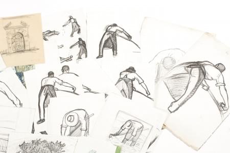 Ensemble de croquis, études et dessins, architectures, figures,...