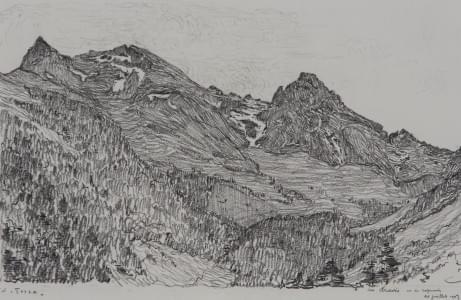 Chaîne des Aravis, mine de plomb sur papier, monogrammée et daté...