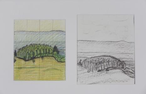 Deux études pour la forêt carrée sur le Salève, Jura et ciel, mi...