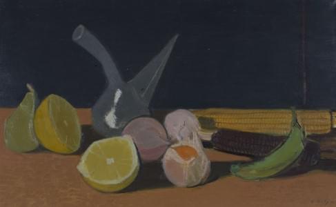 Nature morte aux agrumes, huile sur toile, signée et datée 58, 3...
