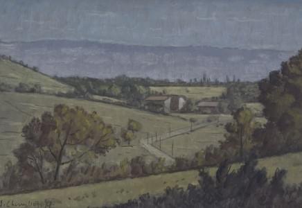 Plaine de Dardagny à Genève, huile sur toile, signée et datée 19...