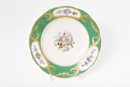 614. Service à dîner à motif de fleurs et liseré doré, fretel citron,