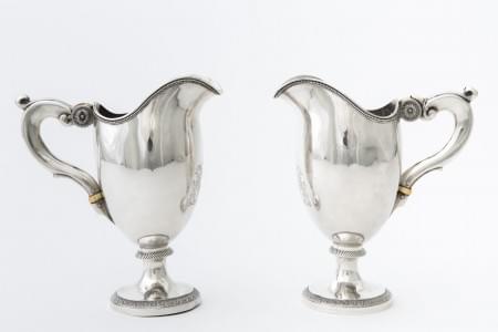 596. Paire d'aiguières néoclassiques armoriées de Chambrier