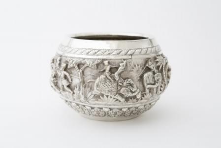 605. Grand bol à décor repoussé de scènes de chasse