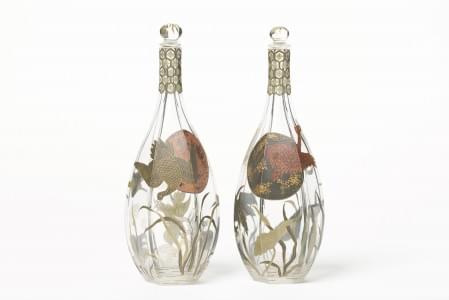 610. Paire de carafes hexagonales à décor japonnisant