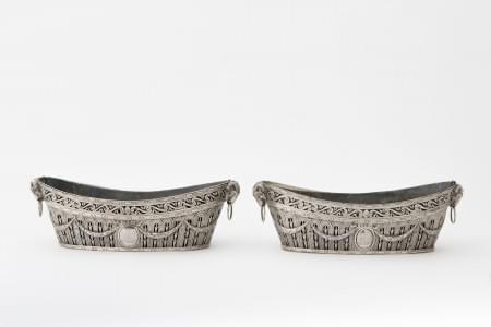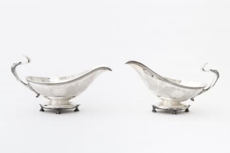 623. Paire de saucières à motif de palmettes stylisées et gravées d'a...