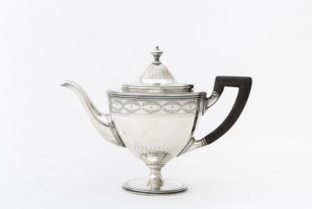 624. Théière néoclassique sur piédouche à motif d'entrelacs de laurie...