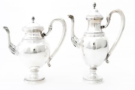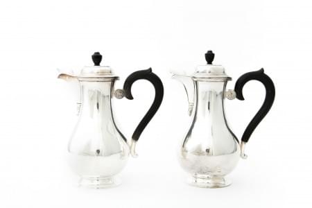 France, circa 1930, argent, comprenant: deux verseuses, une théi...