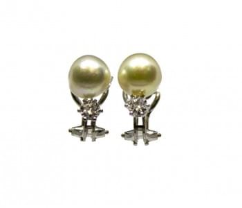 3129. Paire de clips d'oreilles sertis de perles rehaussées de diamant...